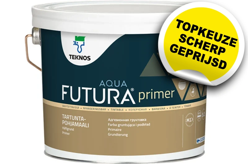 Futura Aqua Primer is een zeer matte, watergedragen grondverf/ hechtprimer voor binnen en buiten. Het is de opvolger van de Drywood Poseidon primer en de Poseidon sealer (voor bloedende houtsoorten en noesten). De Futura Aqua Primer is sneldrogend en zeer geschikt voor houten ramen, deuren, kozijnen, vensterbanken, trappen, meubelen en tuinmeubelen. Binnen kan deze primer ook gebruikt worden op niet-roestende metalen oppervlakken. Deze grondverf kunt u aanbrengen met een lakkwast en vilt of mohair roller en is in vele dekkende kleuren verkrijgbaar. De perfecte basis voor alle Teknos / Drywood aflak verf. Product voldoet aan de eisen van speelgoedveiligheidsnorm EN 71-3:2013 + A3:2018 voor grenswaarden voor migratie van chemische elementen.