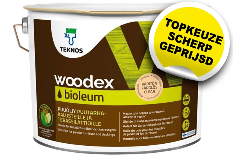 Teknos Woodex Bioleum is zeer geschikt als duurzame bescherming van tuinhout, houten tuinmeubelen, steigerhout, vlonders en terrassen. Ook gevelbetimmeringen kunnen ermee beschermd worden. Nieuw hout wordt bij voorkeur met twee zeer dunne lagen behandeld, bij onderhoud is één dunne laag voldoende. Mede door de goede bescherming, eenvoudige verwerking en het gunstige verbruik is Teknos Woodex Bioleum een goede en voordelige keuze voor het behandelen van tuinhout. Teknos Woodex Bioleum is de opvolger van Teknos Drywood Bioleum Woodoil. Beide producten kunnen zonder problemen over elkaar heen worden aangebracht.