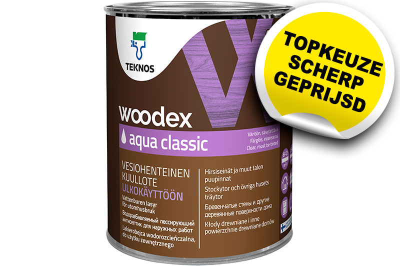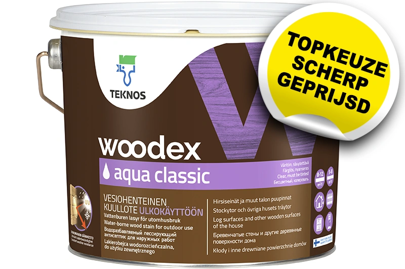 Teknos Woodex Aqua Classic is een transparante beits op waterbasis en speciaal geschikt voor het beschermen van houten gevels buiten tegen vocht en vervuiling. Met een kleurpigment beschermt de beits ook tegen UV-straling van de zon, zodat het hout niet of veel minder snel vergrijsd. De beits dringt in het hout en geeft het hout dus geen filmlaag.